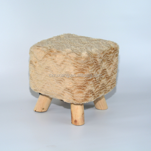 Moderno ronda otomano pie resto taburete con tela de lino y las piernas de madera