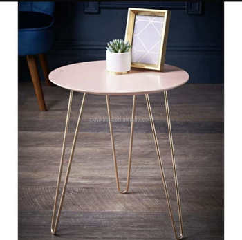 Mesa auxiliar redonda moderna de madera con patas de metal