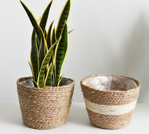 Cesta de almacenamiento de jacinto de agua de maceta de planta colgante de algas marinas tejidas redondas para exteriores
