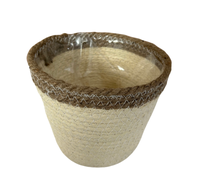 Cesta de almacenamiento de jacinto de agua para plantas colgantes de ratán con cuerda de algodón tejida redonda