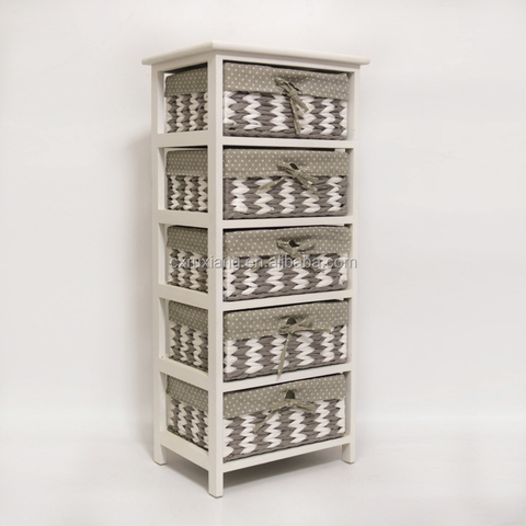 Cajones de madera de 5 niveles, armario de almacenamiento con cajones de cesta de paja