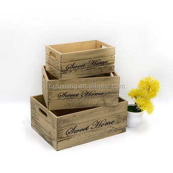 Set di 4 paese rustico cassa di stoccaggio in legno scatola/vassoio decorativo portante scatole di legno