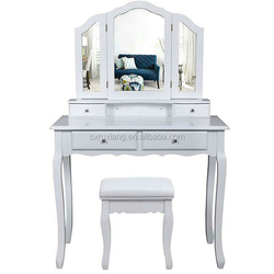 Bianco di legno angolo spogliatoio specchio da tavolo e sgabello