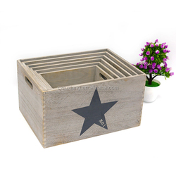 손잡이와 별 로고가있는 씻은 흰색 수공예 나무 아트 박스 세트